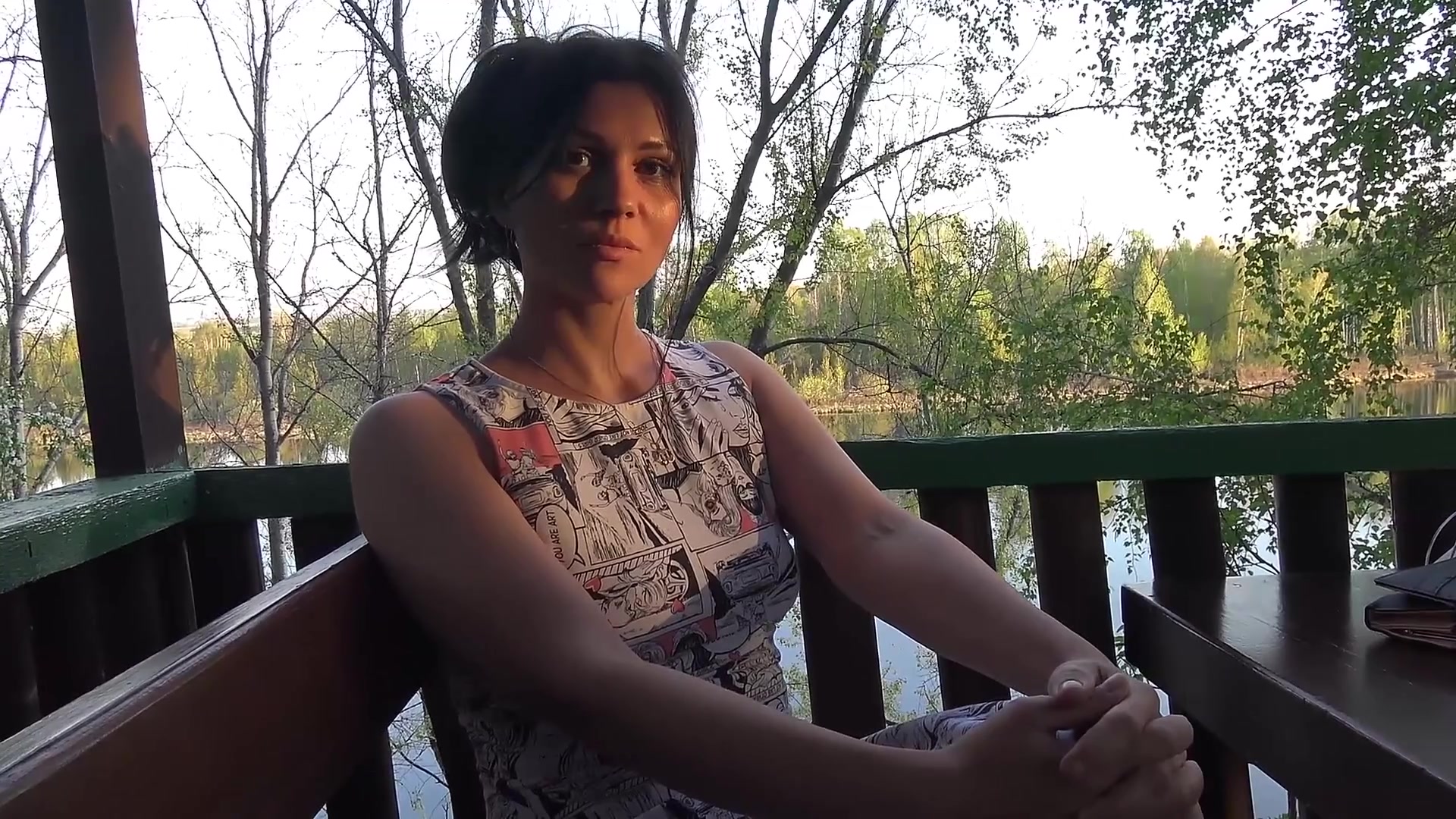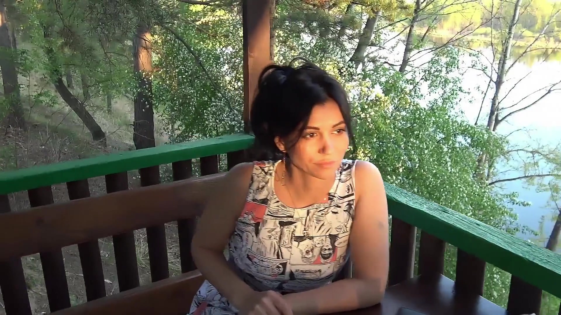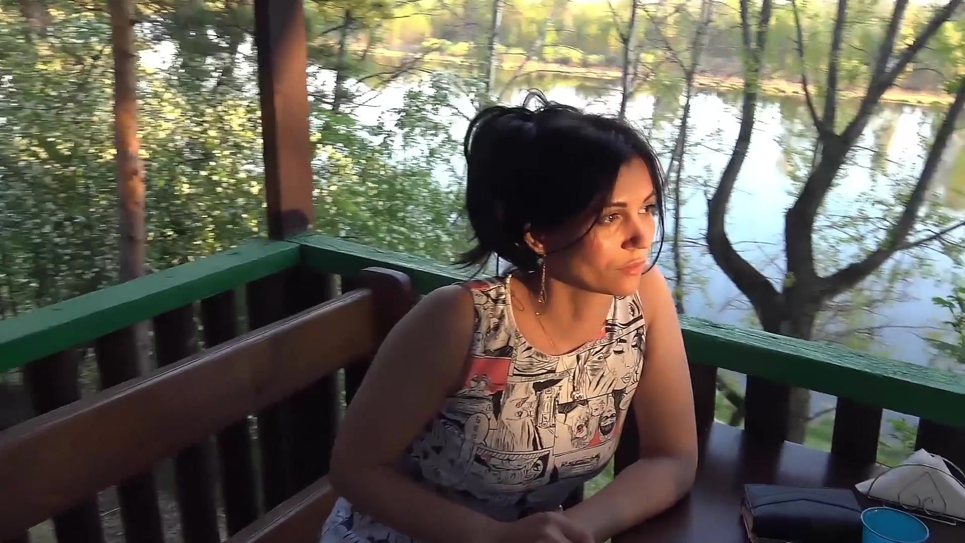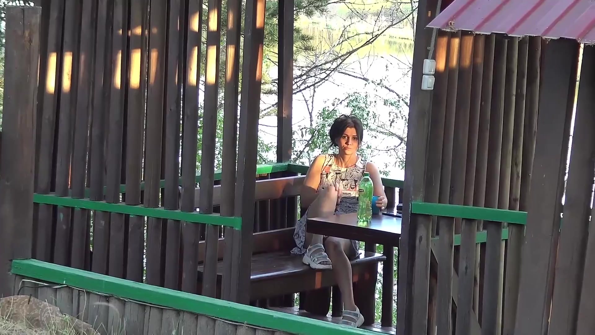 Захотелось подышать прохладным осенним воздухом, чего так не хватает в шумном городе. Отправилась в одинокое уличное кафе в лемопосадке. Ей также надо отдышаться после секса, поэтому трусики не надевала. Я просто обожаю гулять в публичных местах без трусов!