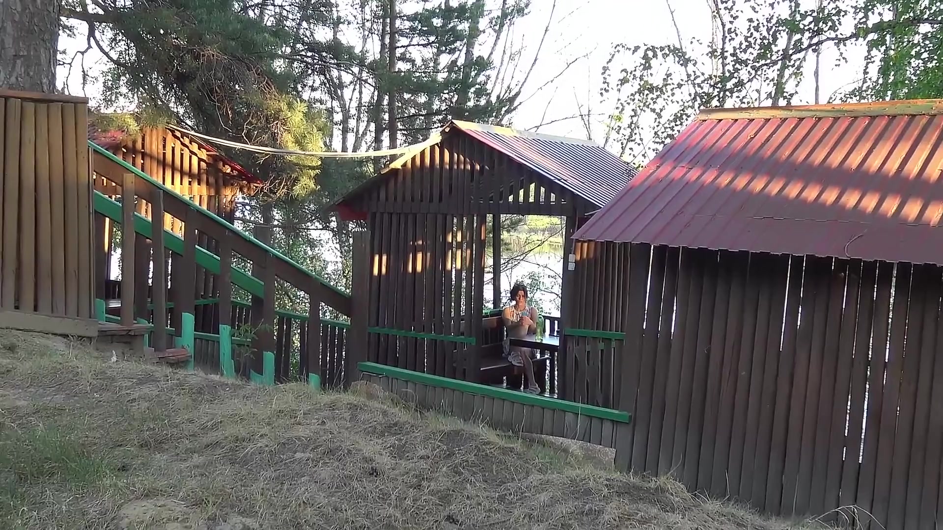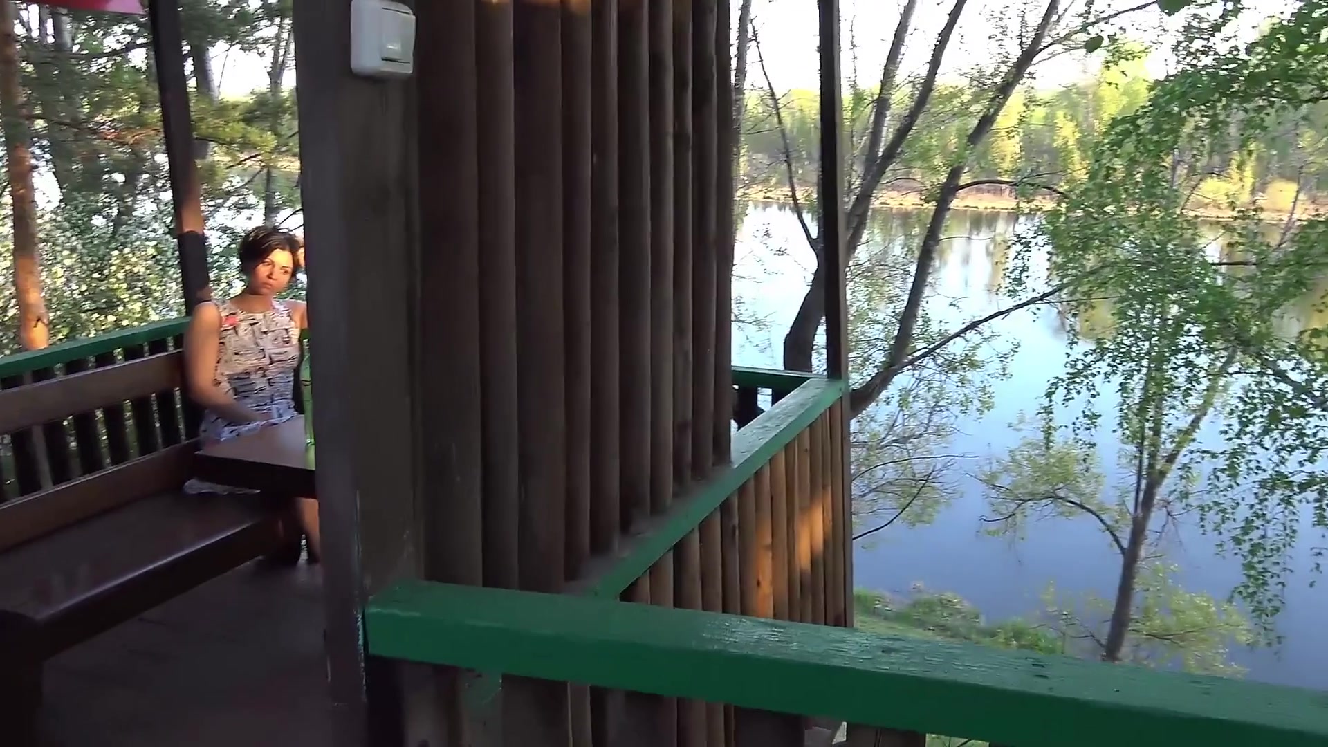 Ужин в уличном кафе за чертой города без трусиков