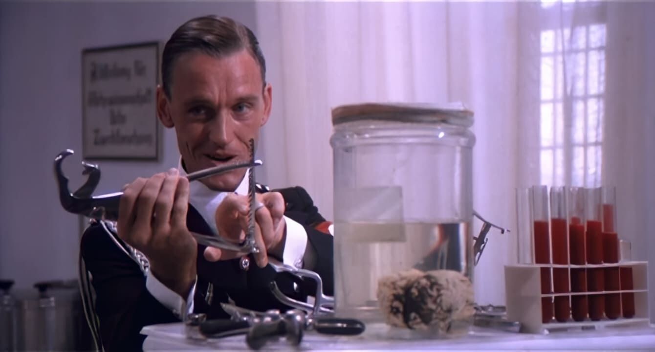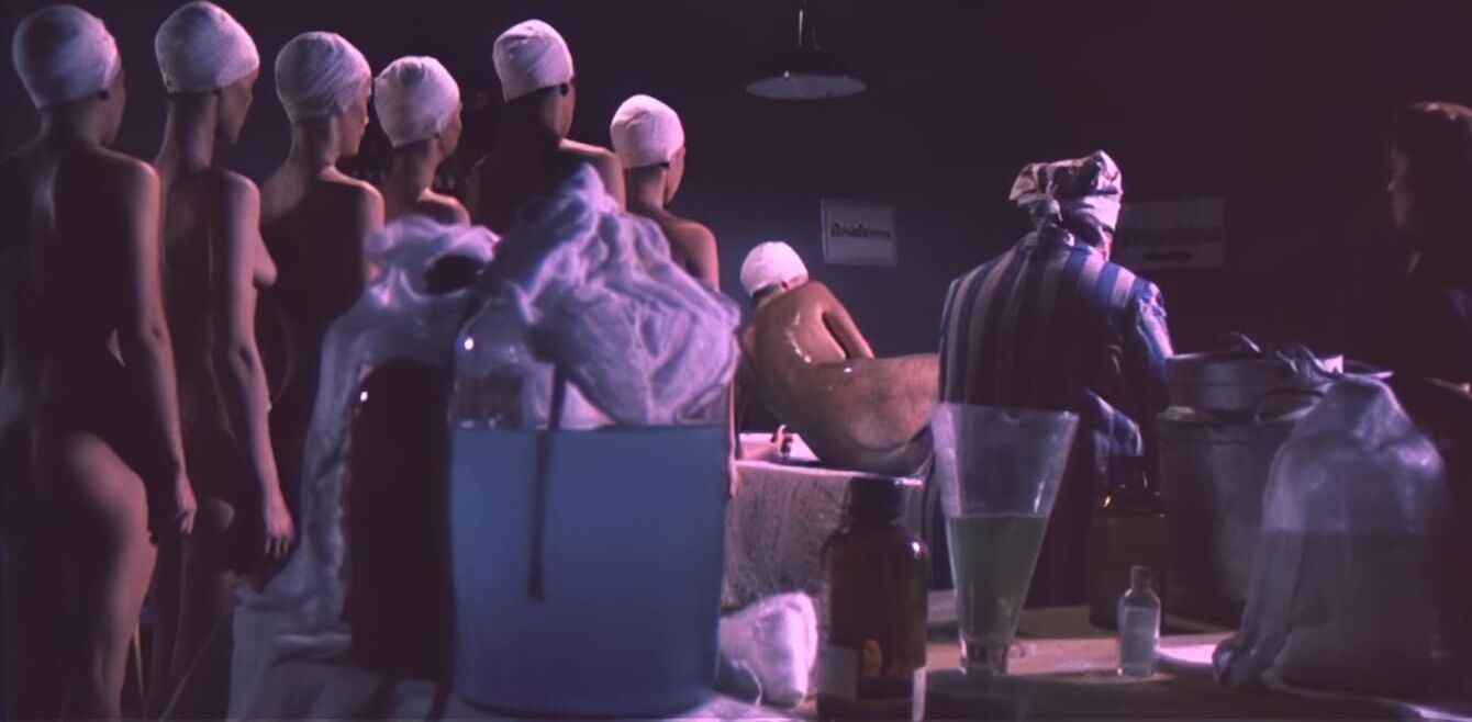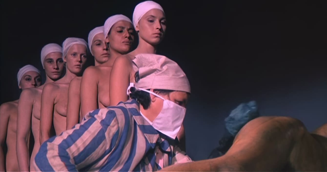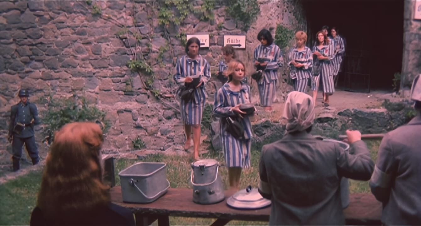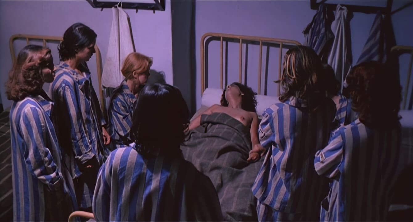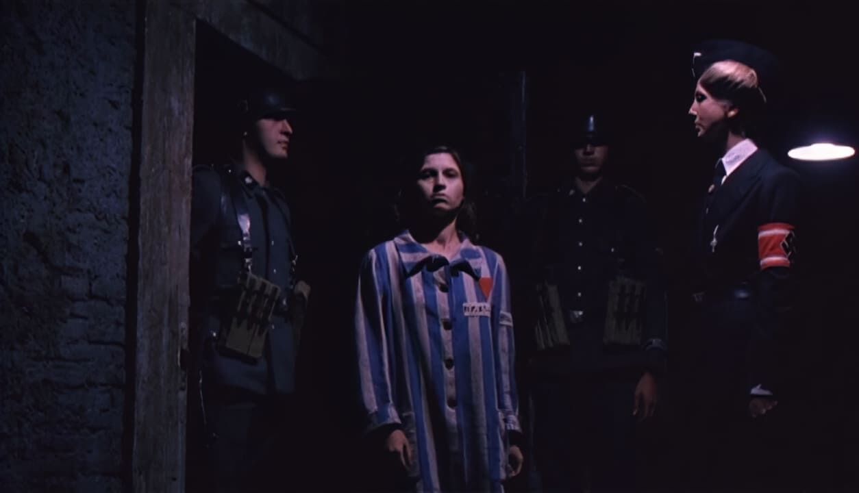 Один из немногочисленных итальянских эротических военых фильмов жанра sexplication на тему нацистских женских концлагерей. Как и во всех подобных фильмах есть молодая красаивица, попавшая в лагерь, садист начальник, раздевания, принуждения, подробные сцены сбривания волос на лобке, зверские опыты и т.д. Молодая женщина едет в поезде, куда загнали арестованных евреек. По пути она вспоминает, что её арестовали, когда она проводила ночь с любимым. Мужчину, на ее глазах просто расстреляли, а её бросили в концлагерь. Поезд останавливается и пленниц выгоняют наружу. Далее обычные для эро-фильмов раздевания, душ, сбриване волос, бесстыдный осмотр в гинекологическом кресле. На свою беду пленница попадает в лагерь, где заправляет один из местных нацистов садистов, которому она когда-то отказала. Теперь она полностью в его власти, смотря на тот беспредел, что случается с непокорными... Итальянское название: Le deportate della sezione speciale SS. Режиссер: Rino Di Silvestro. Студия: Nucleo Internazionale Produzioni Cinematografiche. В ролях: John Steiner в роли начальника лагеря Erner; Lina Polito в роли Tania Nobel; Stefania D'Amario в роли Angela Modena; Erna Schurer в роли надзирательницы Helga; Sara Sperati в роли надзирательницы Trudy; Solvi Stubing в роли надзирательницы Gretta; Guido Leontini в роли Dobermann.